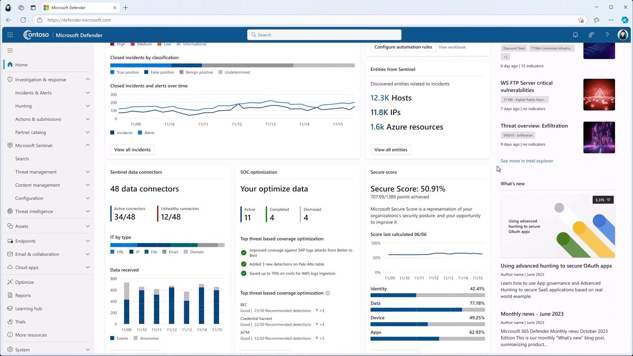 • Extended Detection and Response (XDR) Capabilities: นี่คือจุดเด่นสำคัญ ทำให้ Microsoft 365 Defender มีความสามารถในการรวบรวมข้อมูลเชิงลึกจากแหล่งข้อมูลความปลอดภัยที่หลากหลาย วิเคราะห์ความสัมพันธ์ของแต่ละเหตุการณ์เพื่อสร้างภาพรวมของการโจมตี ทำให้เห็นภาพรวมของภัยคุกคามได้ชัดเจนยิ่งขึ้น และสามารถตอบสนองได้อย่างมีประสิทธิภาพและรวดเร็ว